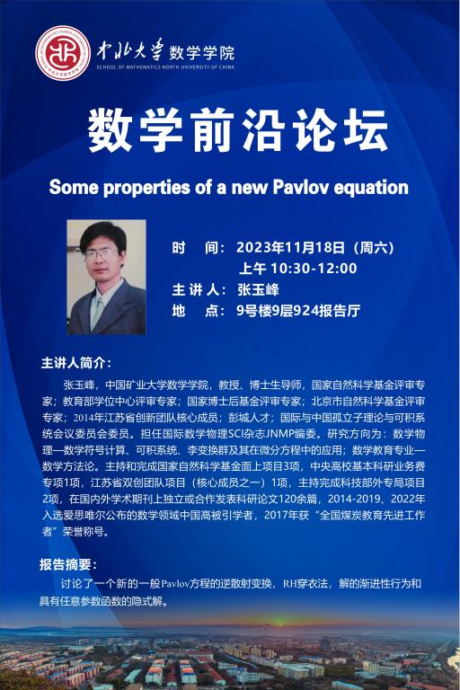 数学前沿论坛第46期 题目:Some properties of a new Pavlov equation
