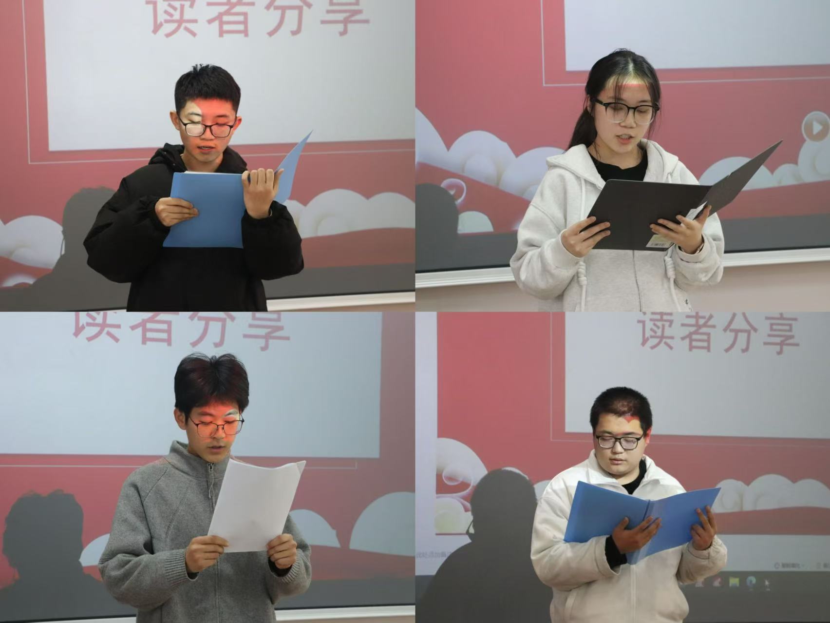 本次活动于3月4日已通过线上形式通知各大一班级班长。韩政言、牛晨煊、吕杨壮、孙思懿、来锦钰、王益洲六位同学作为参赛选手同台分享,偷拍大奶学子踊跃参与,现场秩序井然,学习部工作人员全程做好摄影记录工作。