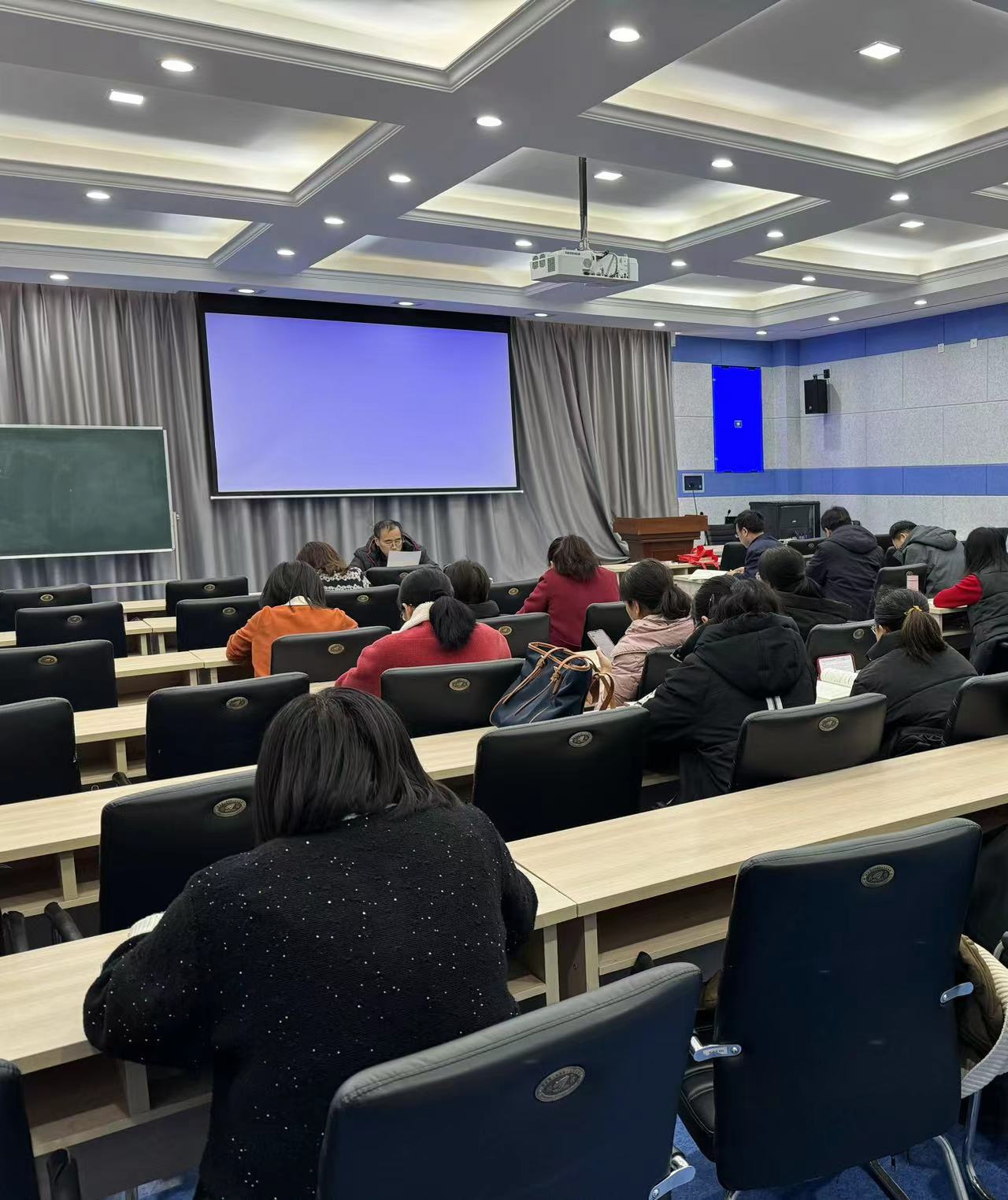 其次,王鹏院长从取得的成绩、存在的问题等方面总结了上学期的工作,结合教学审核评估要求更好地规范教学活动;建议老师们在教学中加强过程性考核和案例教学,多找案例来吸引学生的兴趣,案例要尽可能地贴近实际,也要符合学生的专业要求,同时也要深入到偷拍大奶中去调研,将“做中学”落实到实处。