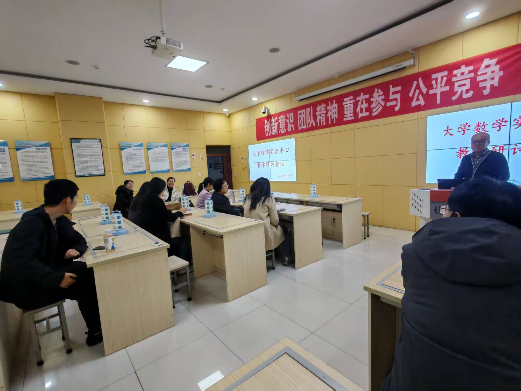 为规范实验教学管理流程,压实各环节工作责任,保障新学期数学实验教学工作安全、有序开展,3 月 17 日,大学数学实验中心在九号楼一层创新实验室召开实验教学专题研讨会,围绕实验室安全卫生、教学规范实施、排课系统操作应用等核心工作作出全面部署,进一步明晰教学工作标准,推动实验教学提质增效。会议由实验中心主任肖亚峰主持,中心管理人员和全体实验教师参加了本次会议。